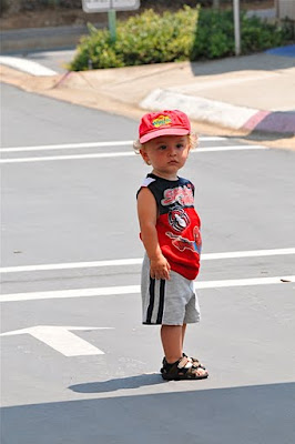 Perhaps it was the downward spiral of the sugar-high he got from his party on Sunday, but Monday was a really rough day (his actual birthday). Even with quite a few no-shows and couldn't-make-its, Donovan had a great time once again at his favorite party place, Safetyville USA. Grandma was in the middle of it all, directing traffic AND taking photos.